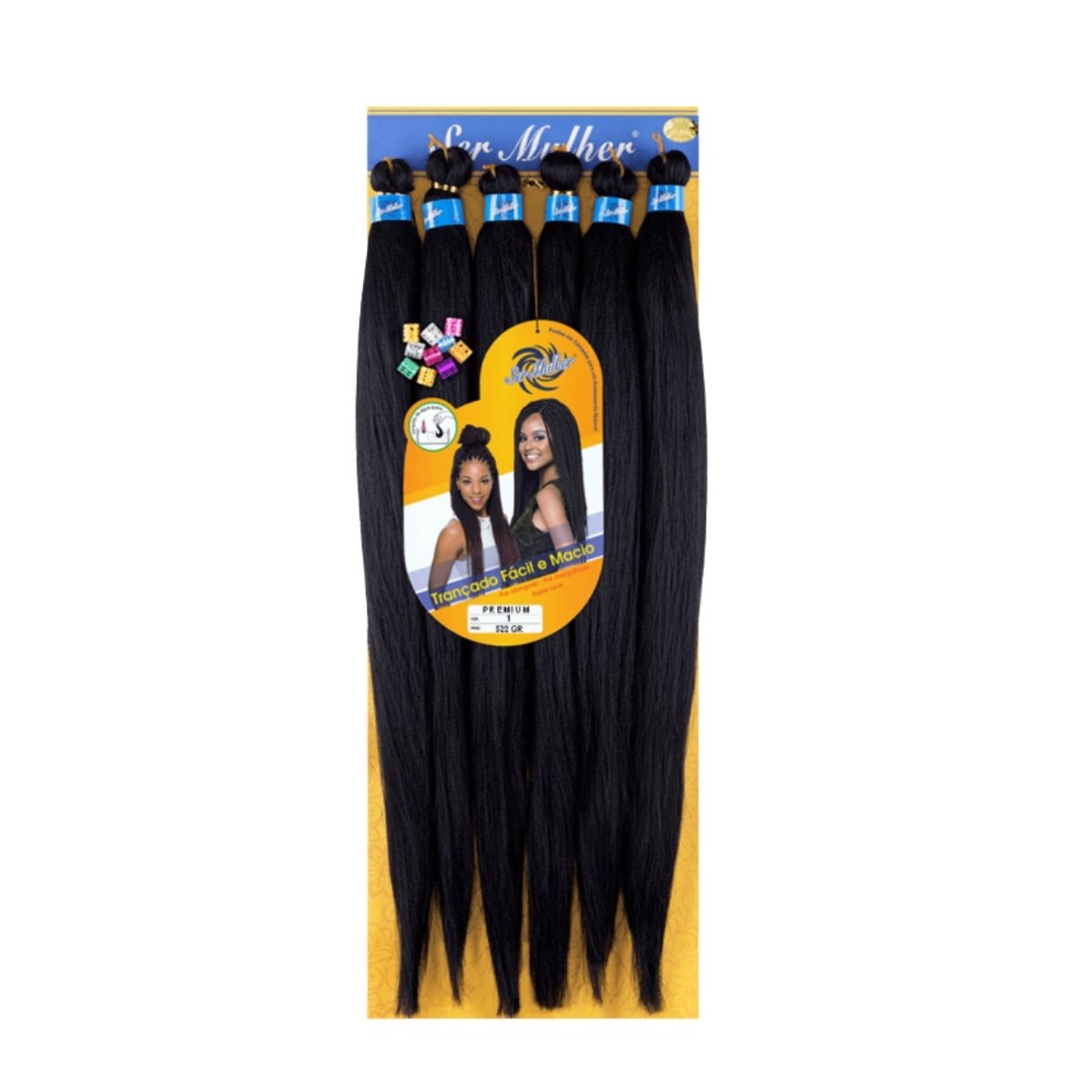 O Super Jumbo Premium 522g – Cor 1 destaca-se pela sua cor preta intensa e textura ultramacia, ideal para tranças longas, definidas e com acabamento profissional. A fibra sintética leve e resistente permite trançar com facilidade e conforto, além de suportar selagem com água quente. Inclui beads decorativos para dar um toque de estilo único ao seu visual.